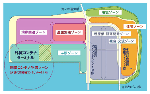 道路部が舗装工事を担当していたアイランドシティ地区外貿コンテナターミナル3パースのうち、1パースが竣工、供用が開始されました。アイランドシティの国際コンテナターミナルでは、神戸以西では最大級となる5万t級のコンテナ船が接岸できる水深14mの岸壁を整備し、大型船の荷役にも対応できるよう九州最大・高規格のコンテナクレーンや、作業効率の向上を図るため、ヤード内には国内初となる8列対応の門型移動クレーン(トランスファークレーン)を導入するなど最新鋭の設備を備えています。